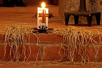 Liedblätter und Schnüre verteilen (siehe Bild rechts)