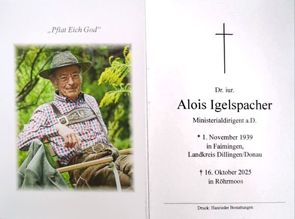 dieses Volkslied war unserem Verstorbenen Alois Igelspacher vertraut.